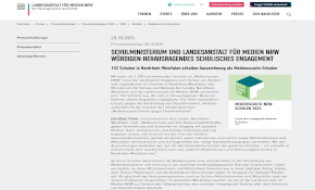 Schulministerium und Landesanstalt für Medien NRW würdigen herausragendes schulisches Engagement